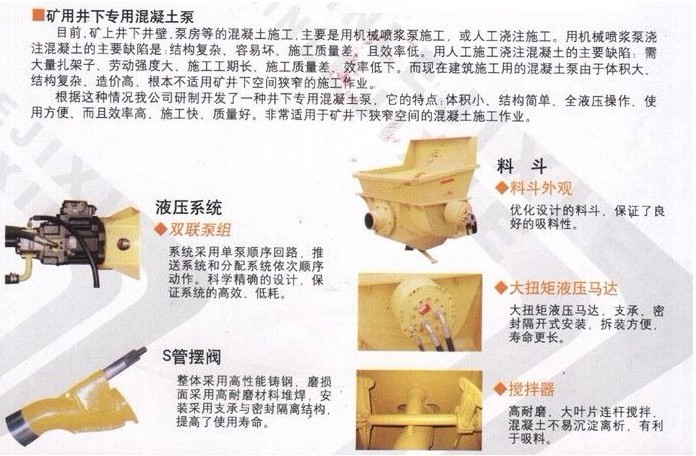 細石混凝土泵配件有:主油缸、砼缸、三相異步電機、主油泵、料斗、S管、電配柜、手動油泵、活塞;00#鋰基脂;常用的電器配件(按鈕天關、行程天關、斷路器、接線端子、變壓器等)、液壓液管;46#液壓油;眼睛板、切割環(huán)(當設備打到5000方以上就可以備了)等等。